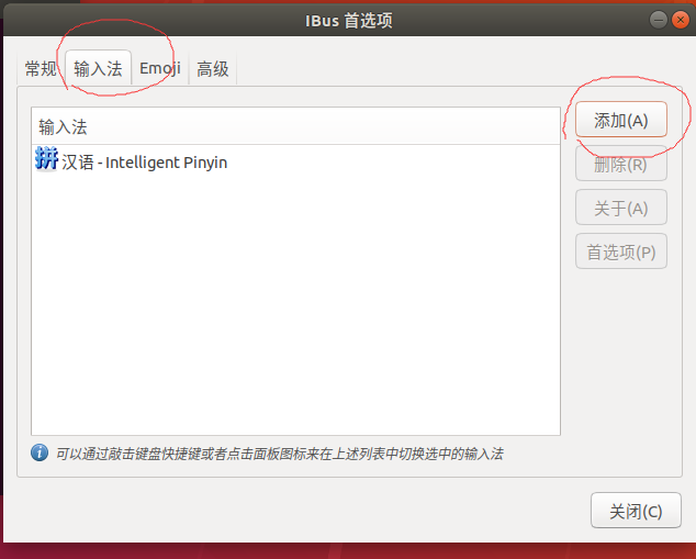 重新启动系统(很重要!!!),然后在终端中输入下述命令进入 ibus 配置界面: