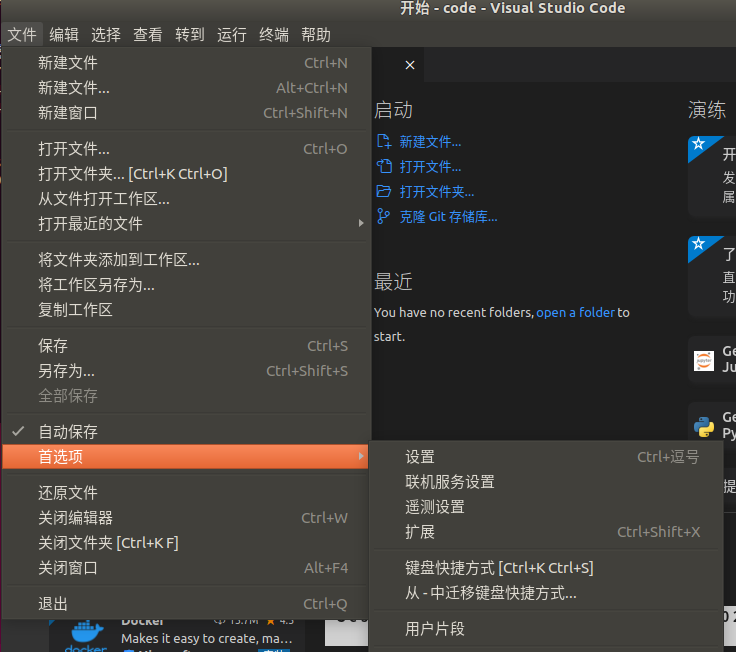 在文件首选项里打开设置